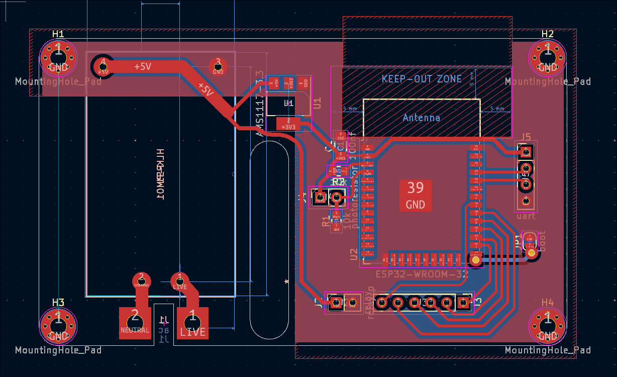 This is a relay PCB based on ESP32 manufactured in DIY way. The main goal of this project was to create a low-cost and easy-to-assemble relay PCB that can be used for home automation. Also during this time (Circa 2016) PCB manufacturing services were quite expensive, so I decided to make it myself.