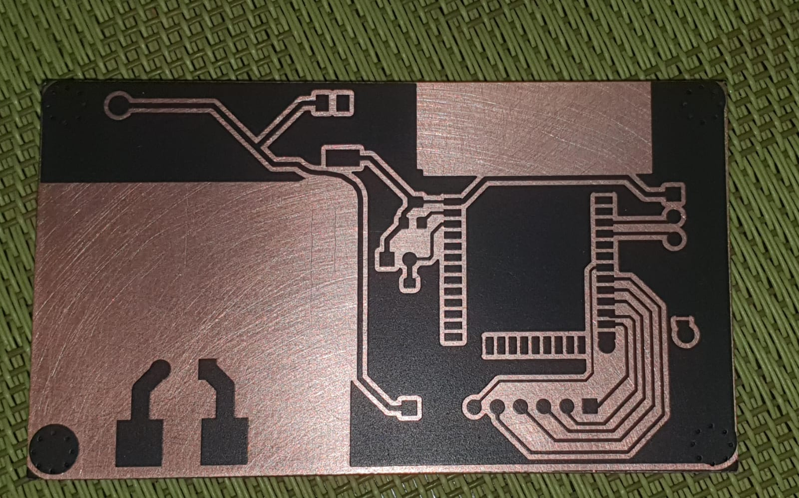 The manufacturing process involved painting a copper-clad board black, then using a laser to burn the design onto the board. After that, the board was etched using a ferric chloride solution to remove the unwanted copper. Then, the board was drilled and components were soldered onto it. Finally, the board was coated with a protective layer to prevent oxidation using “liquid tin”.