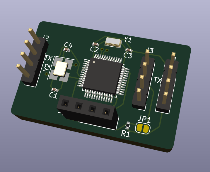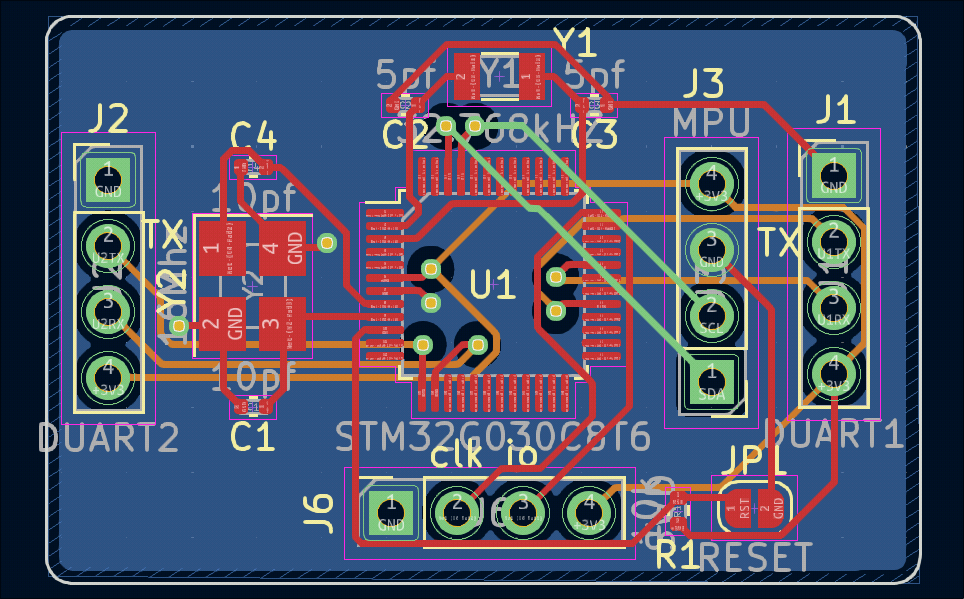 This is a motion capture project module PCB based on STM32. The main goal of this project was to create a modular motion capture system where more nodes can be added easily to cover larger areas and exchange sensor data. Also during this time PCB manufacturing was becoming more affordable, so I decided to design my own PCB for this project with a 4 layer design since I had a coupon and this allowed for a smaller form factor.